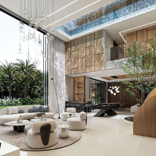 • Floor-to-ceiling retractable glass doors, blurring the line between interior elegance and outdoor serenity.